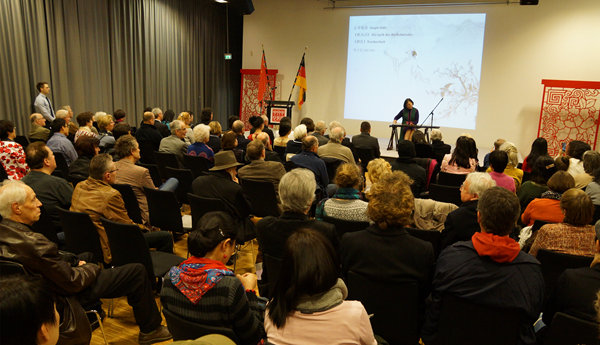 The official opening of an all-female two-week exhibition at the China Cultural Center in Berlin, Mar 7, 2017. [Photo/Chinaculture.org]