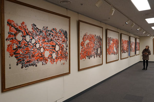 A visitor looks at paintings on display at the China Cultural Center in Tokyo. [Photo/Chinaculture.org]