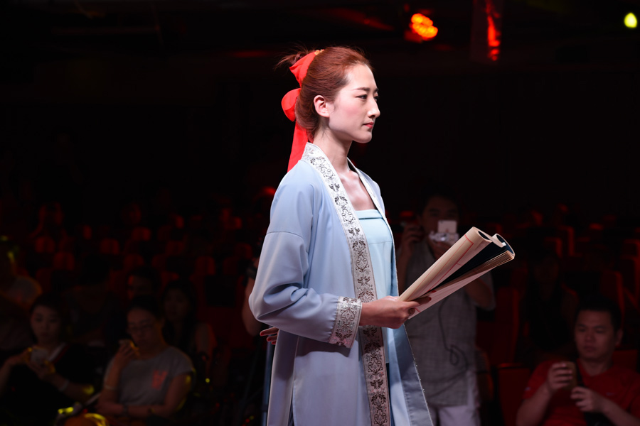A model wears traditional clothes from the Western Han Dynasty (206 BC- AD 24) at the Silk Street on July 29 in Beijing. [Photo by Zhang Xingjian/chinadaily.com.cn]