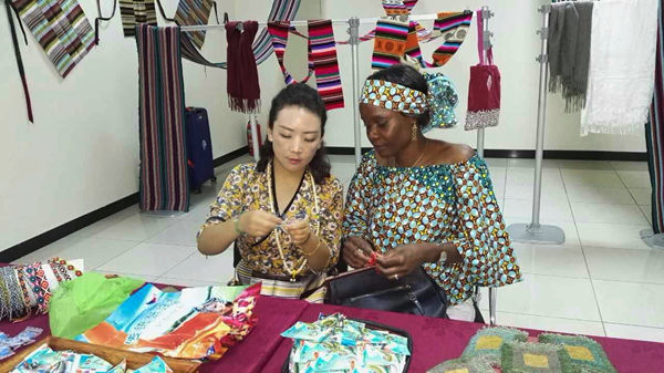Nigerians learn to make string of beads during the Tibet Cultural Month in Nigeria. [Photo/Chinaculture.org]