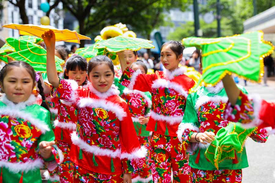 Children perform yangge - a popular Chinese folk dance, at the Christmas parade in Wellington on Nov 26, 2017. [Photo/Chinaculture.org]