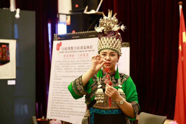 To showcase the diversity of Chinese folk art and offer a glimpse of the age-old craft of mawei embroidery, the China Cultural Center in Benin hosted a series of workshops for local people to experience the ethnic culture of Guangxi province from Dec 15-20.