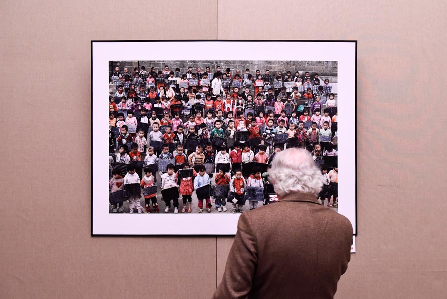 A visitor looks at a photo on display at exhibition Transition at the China Cultural Center in Paris. [Photo/Chinaculture.org] |