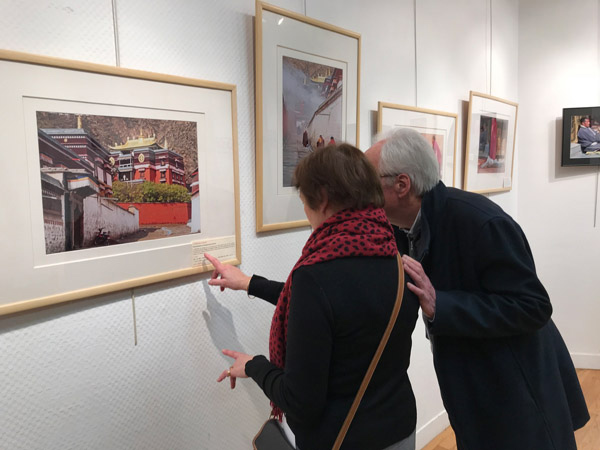 People look at photos on display at the municipal cultural center in Garches, France. [Photo/Chinaculture.org] |