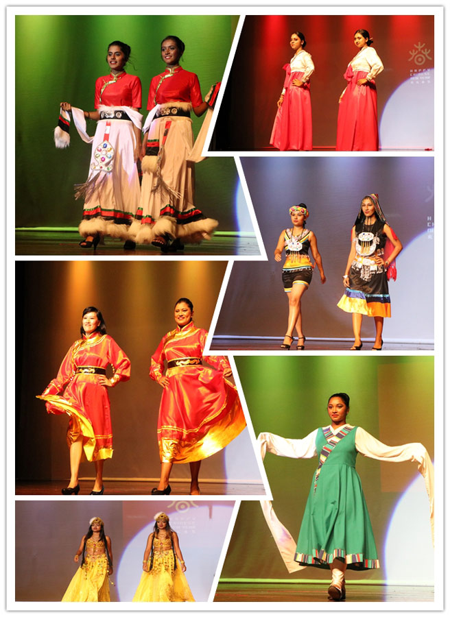 Teachers and students from different ethnic communities at the Mahatma Gandhi Institute stage a fashion show featuring costumes of different Chinese ethnic groups during the “2018 Happy Chinese New Year” celebration at the Mahatma Gandhi Institute in Mauritius, Feb 20, 2018. [Photo/Chinaculture.org]