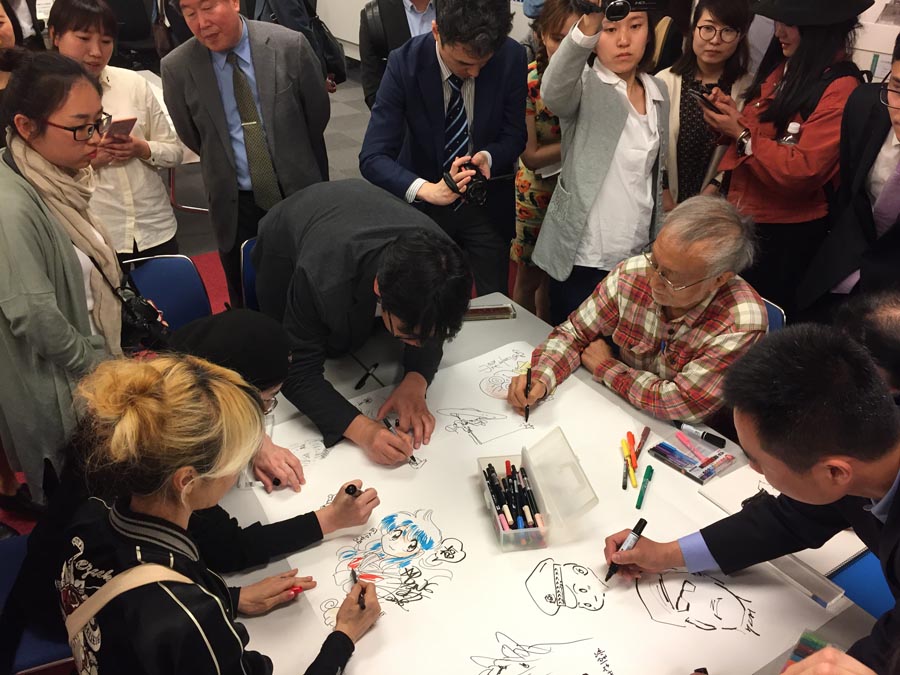 People gather to create cartoons together at an interactive zone on the sidelines of the exhibition April 3, 2018. [Photo/Chinaculture.org]