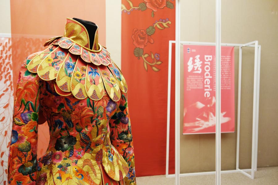 An embroidered silk dress is showcased at the Paris China Cultural Center on June 5, 2018. [Photo provided to Chinaculture.org] |