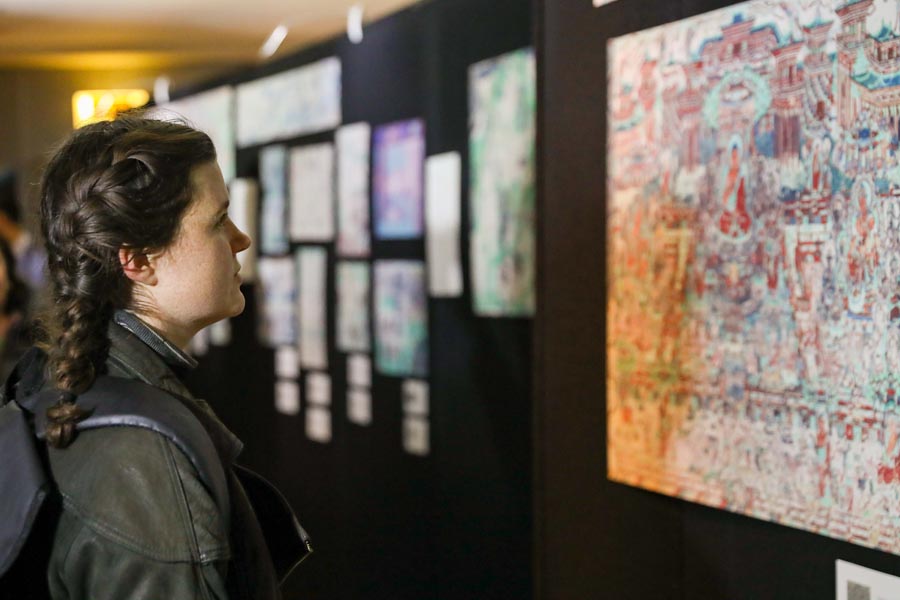 A visitor looks at murals on display. [Photo provided to Chinaculture.org]