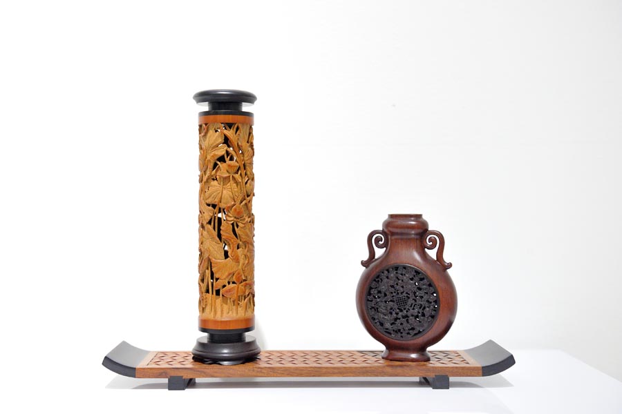 Carved works from East China's Anhui province on display at the China Cultural Center in Singapore. [Photo/Chinaculture.org] |