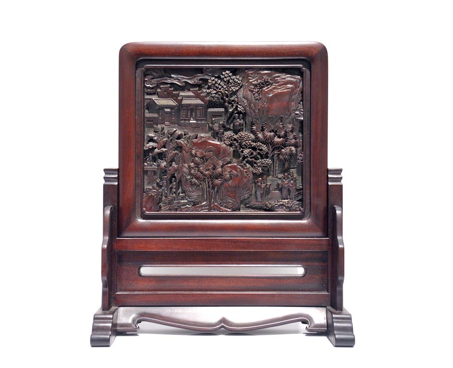 Carved works from East China's Anhui province on display at the China Cultural Center in Singapore. [Photo/Chinaculture.org]