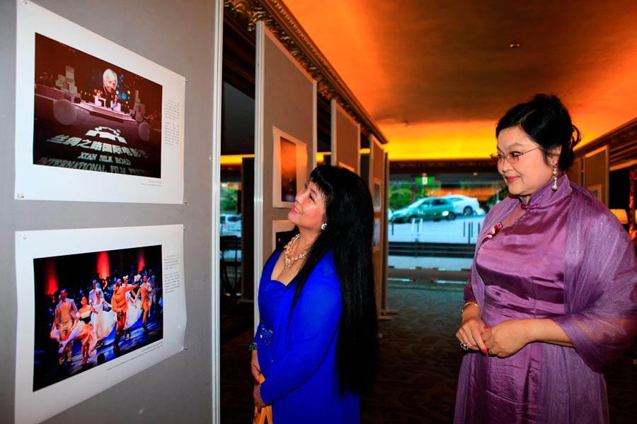 Visitors look at photos on display at a theme exhibition highlighting people-to-people exchanges over the five years of the BRI at the Chinese consulate general in Auckland on Sept 28, 2018. [Photo/Chinaculture.org]