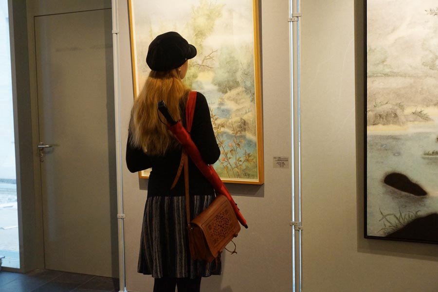 A visitor looks at a Chinese painting at the China Cultural Center in Berlin on Nov 11, 2018. [Photo/Chinaculture.org]