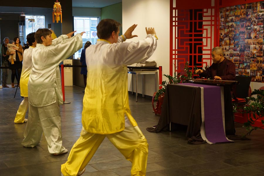 Guqin master Pei Jinbao plays the instrument for German tai chi players at the China Cultural Center in Berlin on Nov 11, 2018. [Photo/Chinaculture.org]