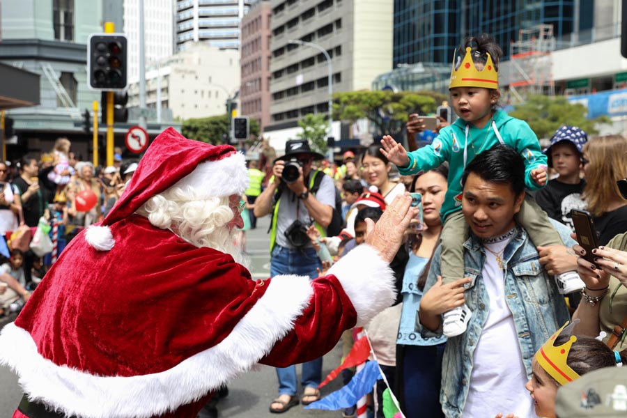 A Very Welly Christmas Parade attracts crowds of people in Lambton Quay in Wellington, New Zealand, on Nov 24 and 25, transforming the street into a Christmas wonderland. [Photo/Chinaculture.org]