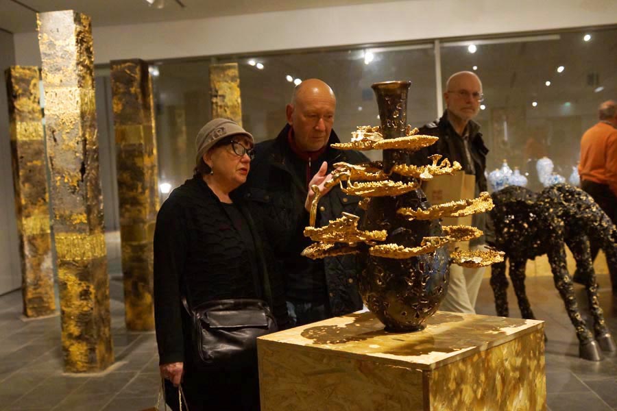 Visitors look at a copper sculpture on display at the China Cultural Center in Berlin, Dec 10, 2018. [Photo/Chinaculture.org] |