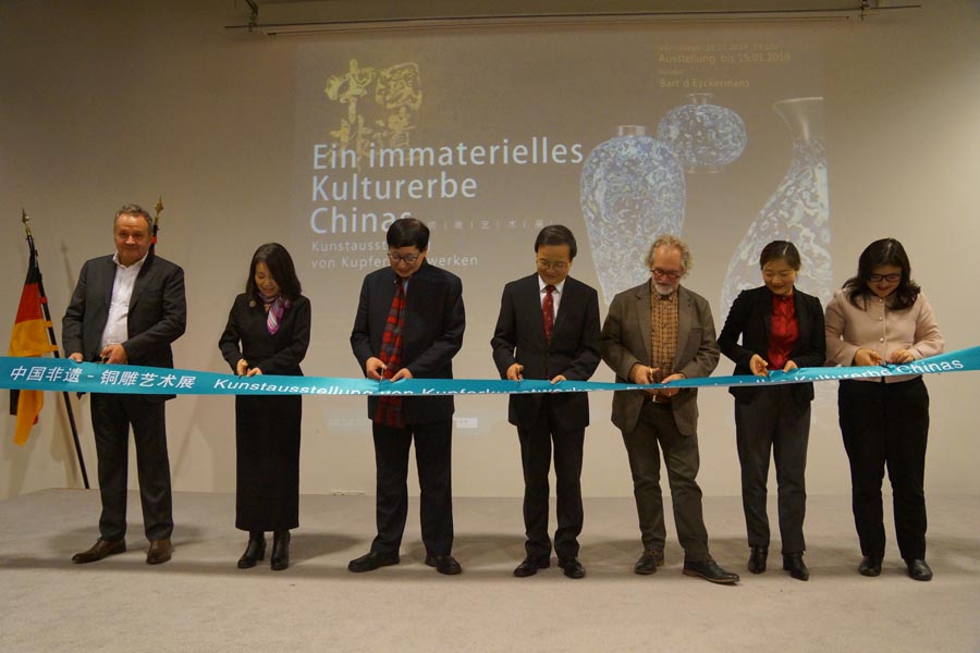Guests cut the ribbon for the opening of the exhibition on Dec 10, 2018. [Photo/Chinaculture.org]