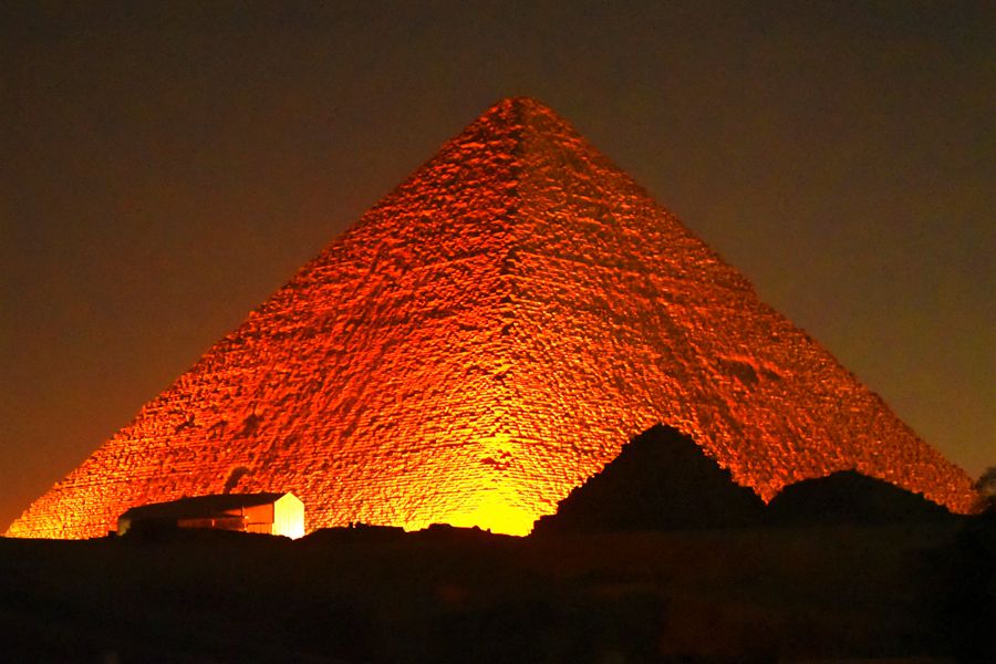Giza pyramids and Sphinx glow in ‘Chinese Red’