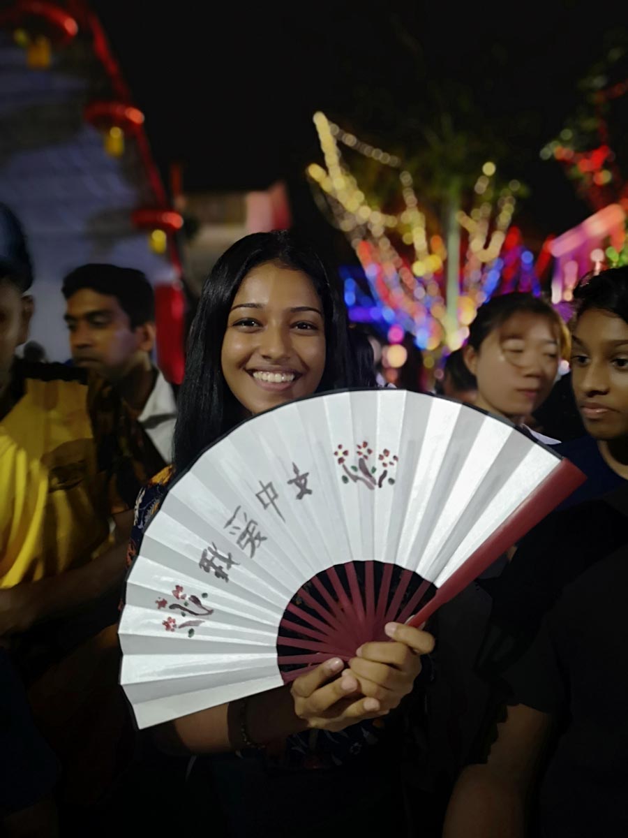 A Sri Lankan girl poses for a photo with a handcrafted work at the "Happy Chinese New Year - Chinese Cultural Fair" in Colombo, Sri Lanka on Feb 15, 2019. The cultural event is being held at the city's Arcade Independence through Feb 19, featuring cultural performances in song, dance and acrobatics, as well as crafts and a food corner for signature Chinese delicacies. [Photo/Chinaculture.org]