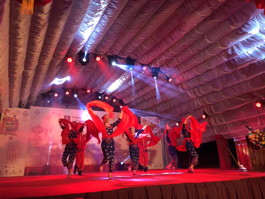 Chinese dancers perform at the "Happy Chinese New Year - Chinese Cultural Fair" in Colombo, Sri Lanka on Feb 15, 2019. [Photo/Chinaculture.org]