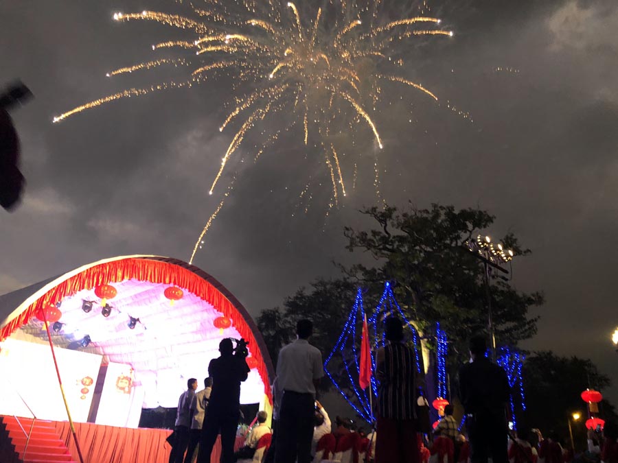 Fireworks burst over the sky at the "Happy Chinese New Year - Chinese Cultural Fair" in Colombo, Sri Lanka. [Photo/Chinaculture.org]