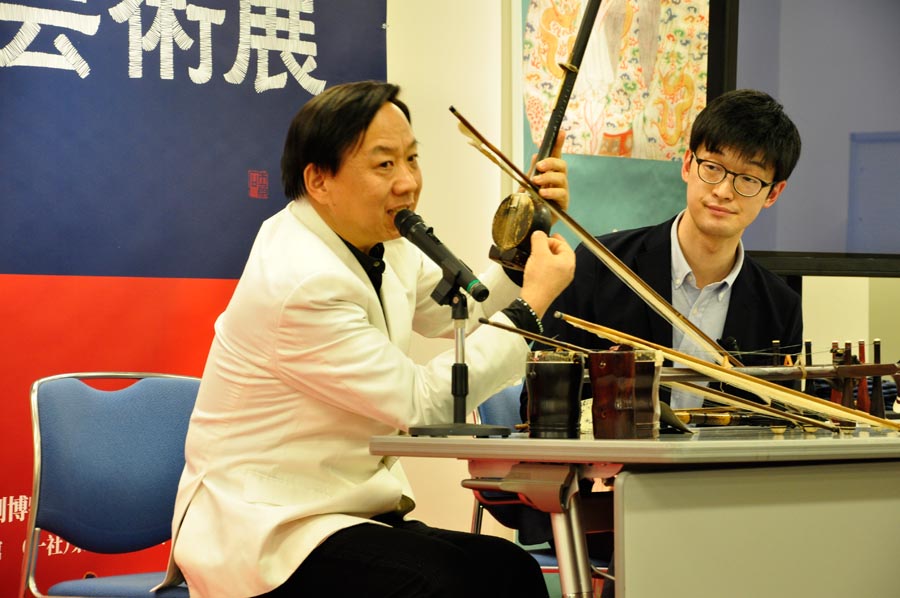 Zhang Xiuling (left) lectures on the erhu, including its history, types, methods of playing and sound characteristics, April 4, 2019. [Photo/Chinaculture.org]