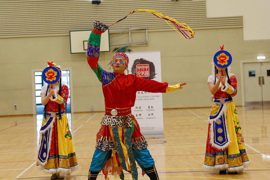 Chinese dancers perform a Tibetan folk dance in Wellington, April 28, 2019. [Photo/Chinaculture.org]