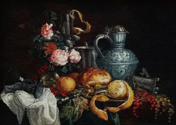 A western-style still life is captured in woolen embroidery. [Photo/Chinaculture.org]