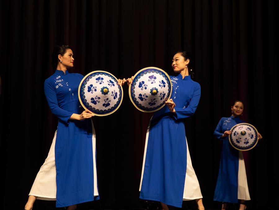 Chinese dancers dressed in qipao (a traditional Chinese one-piece dress) perform at a gala of Eastern and Western classical music and dance in Palmerston North, New Zealand, on July 20, 2019. [Photo/Chinaculture.org]