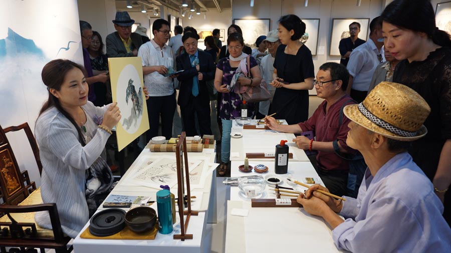 Visitors listen to explanations of the features of Chinese painting, July 24, 2019.[Photo/Chinaculture.org]