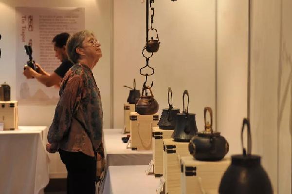 Dubbed "the Exhibition of Teaware and Tea Art with Oriental Aesthetics," the event showcases about 30 traditional Chinese iron, copper, tin, silver and golden teapots with various shapes and sizes, in addition to presentations on stage by Chinese tea and teapot makers.