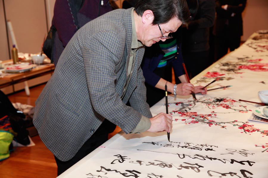 An artist creates Chinese calligraphy at the event's opening on Sept 25, 2019. [Photo/Chinaculture.org]