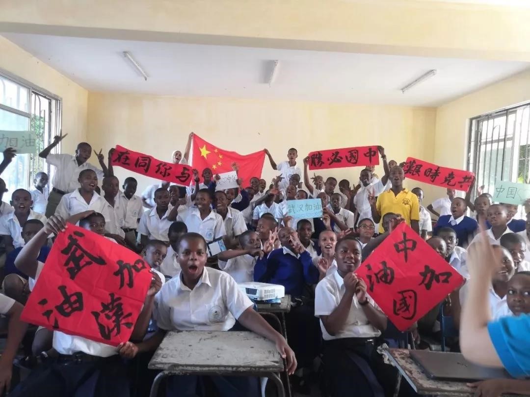 Tanzanian students cheer for Chinese people during the COVID-19 outbreak. [Photo provided to Chinaculture.org] |