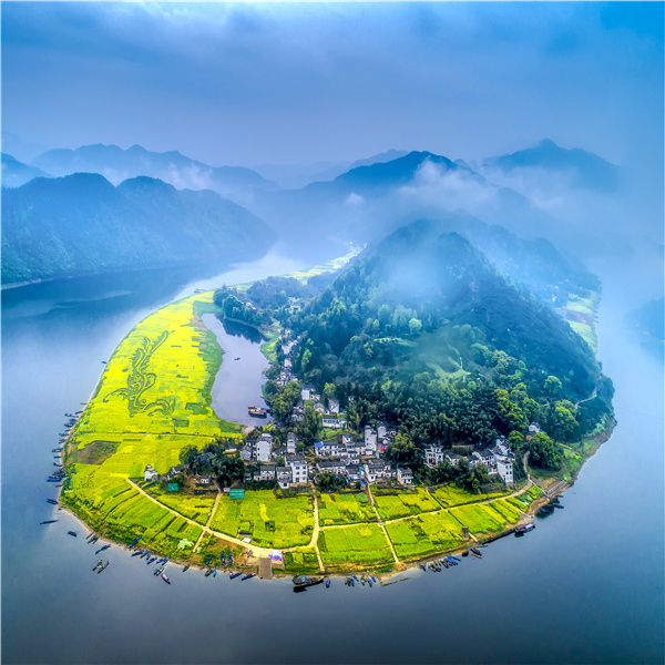 An aerial view offers a lovely scene featuring the Xin'an River in East China's Anhui province. [Photo provided to Chinaculture.org]