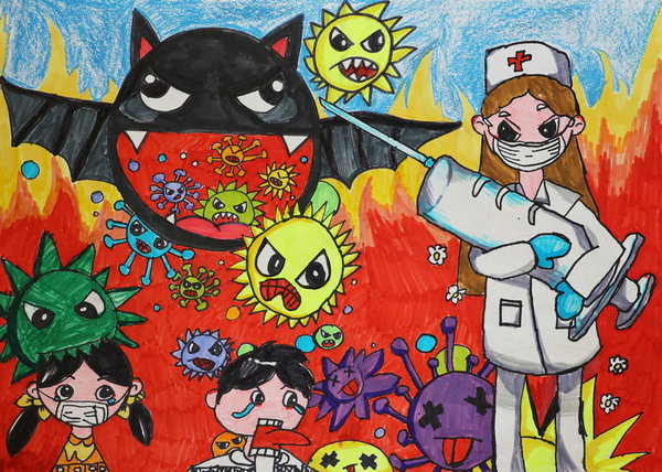 The China Cultural Center in Mauritius launched an online exhibition, featuring Chinese children's paintings on pandemic fight. [Photo provided to Chinaculture.org] |