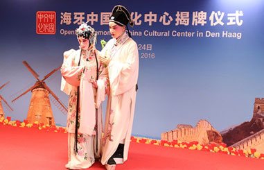 Ding Wei (middle), China's vice cultural minister, attends the launch of the China Cultural Center in Den Haag, the Netherlands, Nov 24, 2016. [Photo/Chinese Embassy in the Netherlands] |