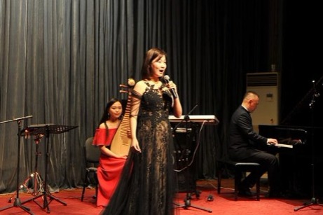 A Chinese singer performs at the China Cultural Center in Cairo on Feb 27, 2019. More than 10 Chinese State-level artists staged a concert featuring both traditional Chinese folk music and classical tunes from countries along the ancient Silk Road.