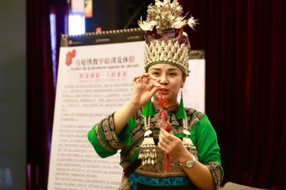 To showcase the diversity of Chinese folk art and offer a glimpse of the age-old craft of "mawei" embroidery, the China Cultural Center in Benin hosted a series of workshops for local people to experience the ethnic culture of Guangxi province from Dec 15-20.