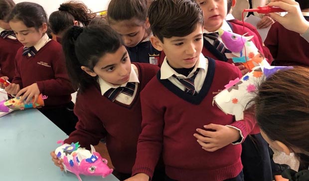 Artists from Taiwan introduce the Chinese zodiac to students at a primary school in Kalkara, Malta, Jan 10, 2019. China assigns an animal and its reputed attributes to each year in a repeating 12-year cycle, with 2019 the Year of the Pig. A new zodiac animal exhibition is underway at the China Cultu
