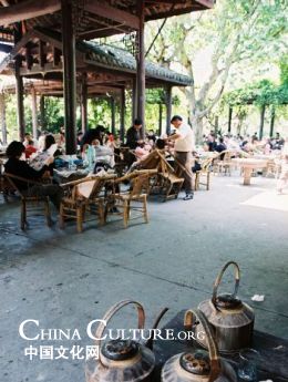Some of the best places to find these "losers" are the teahouses in Chengdu. Here, they gamble by playing mahjong and all kinds of card games, watch their caged birds, chat, or do nothing. They enjoy eating ma la tang (meaning "numb, spicy and hot"),, a cheap Chengdu delicacy featuring skewered bits of vegetable and meat cooked in a hot pot); and playing mahjong with tiny stakes.