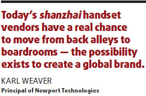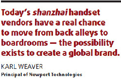 "Shanzhai mobile phones have shown pretty impressive innovation in terms of technology, appearance and manufacturability, which find no parallels," says principal of Newport Technologies Karl Weaver, who specializes in shanzhaiji.