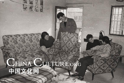 Soon after, Han Ping and his younger brother made simple sofas for their parents and their own families, which was a fad at the time. Many people added to their furnishing with "do it yourself" items. A typical domestic job had two armrests and four legs, with a cushion made by installing springs muffled by a layer of cotton. Then the whole thing was wrapped in cloth. To the average family, sofas were objects of desire seen only in films and regarded therefore as "luxury items" tainted by the "bourgeois lifestyle." But in a social environment enjoying the effect of gradual exposure to the world, the sofa soon became the most prized of household goods to show off.