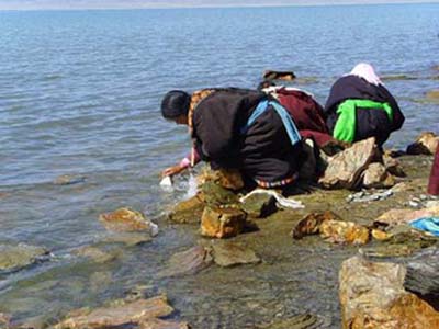 At the same time, many old people and women will knee at the lakeside, take off amulets and wash them in the lake. It is said that washing amulets in the lake that day will bless and protect the people for a year. Many lads will ride horse and run about in the lake wildly, also expecting blessing of theLakeGod.