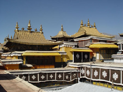 Yellow and red seldom occur in the general Tibetan population’s residences, but they occur frequently in temples and monks’ garments. The yellow house on Bakuo Street owes its color to Tsangyang Gyatso.