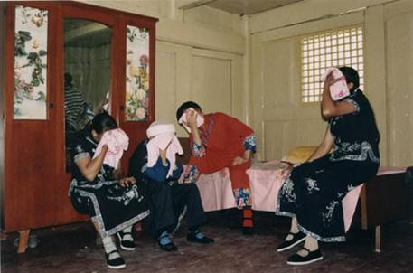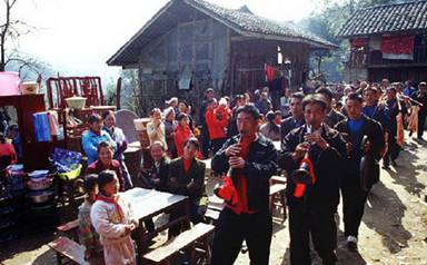 The weeping songs can be sung by one person or two. If one girl sings, she will cry for her destiny, the deep affection to her relatives and the feudalistic marriage custom she suffers under. When two girls weep together, it is called "sister crying." The bride cries and sings first, and then the other girl will sing together with the bride to console her.