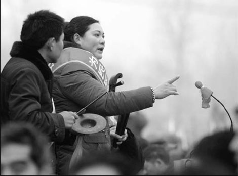 Lu Huarang, a 45-year-old farmer from Pingdingshan county, who has attended the fair for about three decades, performed a Henan Zhuizi ballad to promote family-planning policies.