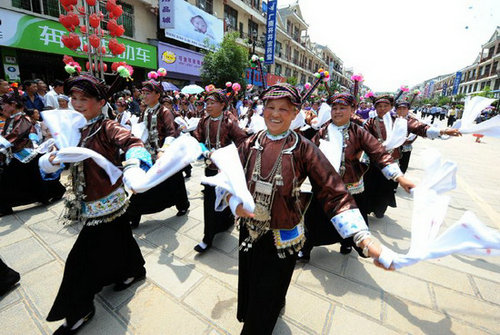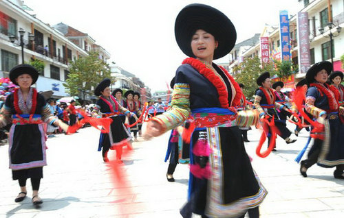 Photo taken on April 22, 2012 shows a scene of an ethnic minority costume show held in Guangnan County of Wenshan Zhuang-Miao Autonomous Prefecture, southwest China's Yunnan Province. People of ethnic minorities in Wenshan presented their clothes during a costume cultural festival here on Sunday. (Xinhua/Chen Haining)