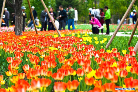 Tulips are in full bloom at the Changchun Park in Changchun, capital of northeast China's Jilin Province, May 15, 2012. (Xinhua/Xu Chang)