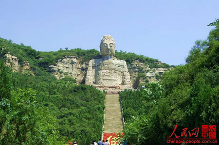 Mengshan Mountain Giant Buddha, also called West Hill Giant Buddha, is located in the Mengshan Mountain, around 20 kilometers to the south west of the city of Taiyuan, Shanxi province. The Buddha statue facing south was built on the hills. The surface of the statue has suffered from serious denudation and been badly weathered.