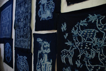 Indigo cloth dyeing and finishing skills are still alive today. Daily items like bedcovers, cloth-wrappers and headscarves are produced by manual spinning, weaving and dyeing. Most of the decorating designs are the images of flowers and animals and sometimes simple geometric figures can also be found. With the features of endurance against dirt and wear, solidness and long service life and propitious designs, indigo cloth is very popular among the public and keeps alive and attractive all the time, and becomes one of the most typical traditional handcrafts.