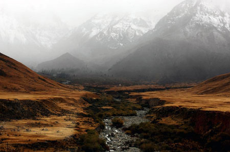 Photo taken on Sept. 24, 2012 shows the beautiful autumn scenery of the Heihe River Canyon in Qilian County, northwest China's Qinghai Province. (Xinhua/Wang Bo)